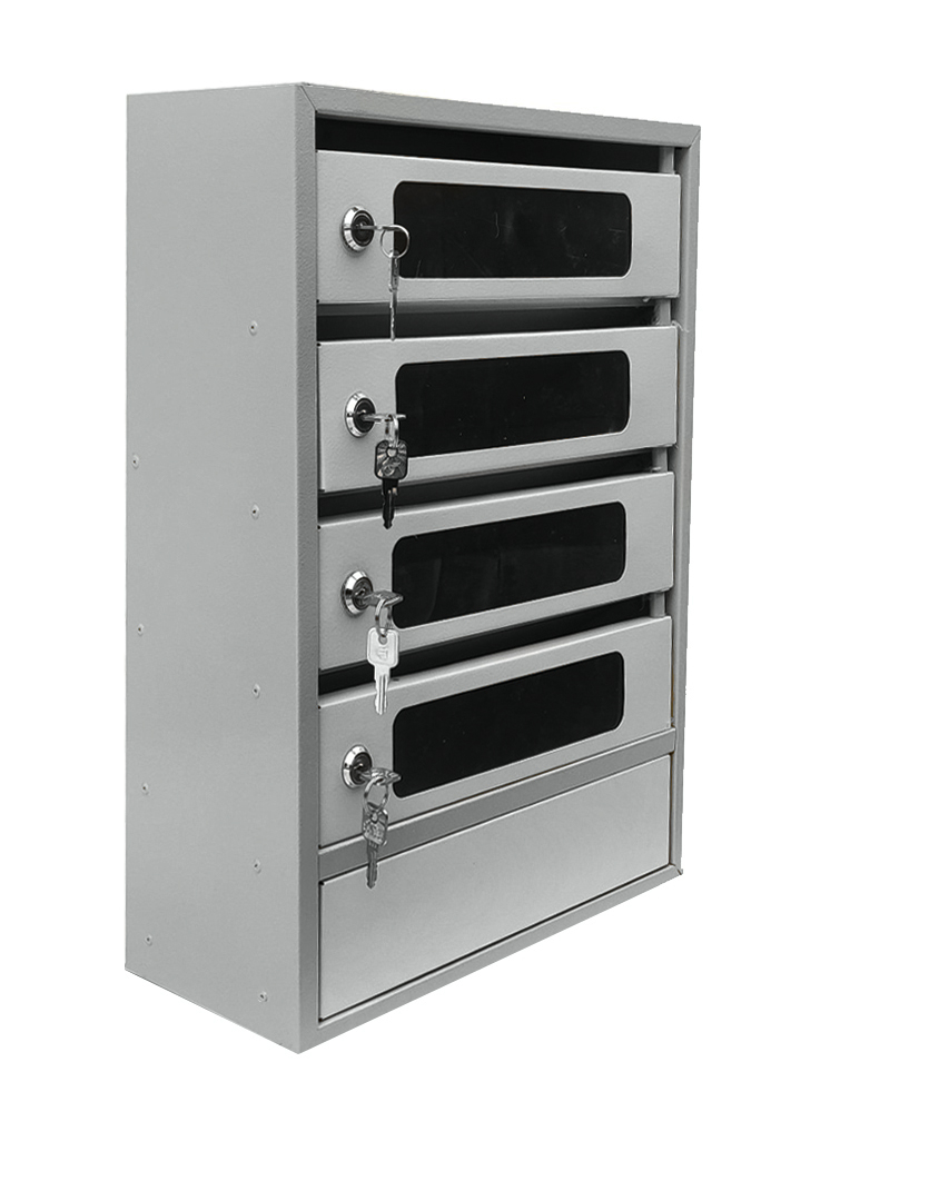 Почтовый ящик Орион Престиж М-4, вертикальный многосекционный с прозрачными окошками. Данные почтовые ящики подходят для штатной замены почтовых ящиков в современных подъездах, а так же для установки в подъезд в новостройках строительными компаниями. Почтовые ящики Орион Престиж М-4 - с задней сплошной стенкой, корреспонденция располагается в секции под углом 50 градусов, с панелью закрывающей откос. Замки установлены. Дверцы открываются слева направо. Металл - 0,6 мм. Каждая секция почтового ящика оборудована прозрачным окошком, что позволяет увидеть наличие или отсутствие в ящике почтовой корреспонденции.